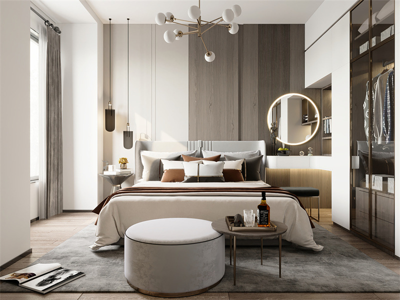 功能上用集成收纳、分区设计优化实用体验。既保留现代风格的利落简约,又通过轻奢细节、柔化软装适配休闲需求,让空间在精致调性中透出松弛舒适感,实现美学与体验的双向落地。